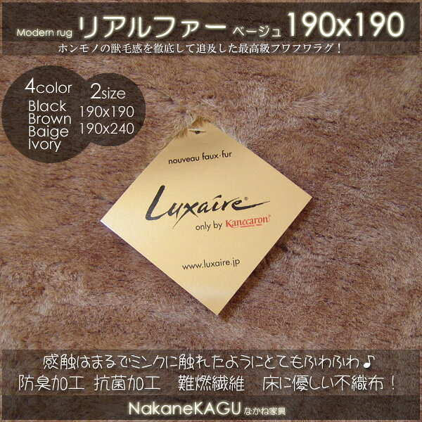 ..ミンクたっちフェイクファーラグ'●最高級ミンクたっちラグ◆ベージュ190x190◆リアルファー◆日本製防ダニ抗菌2.2畳カーペットcarpetrug★ho【あす楽対応】【秋の新生活フェア10090