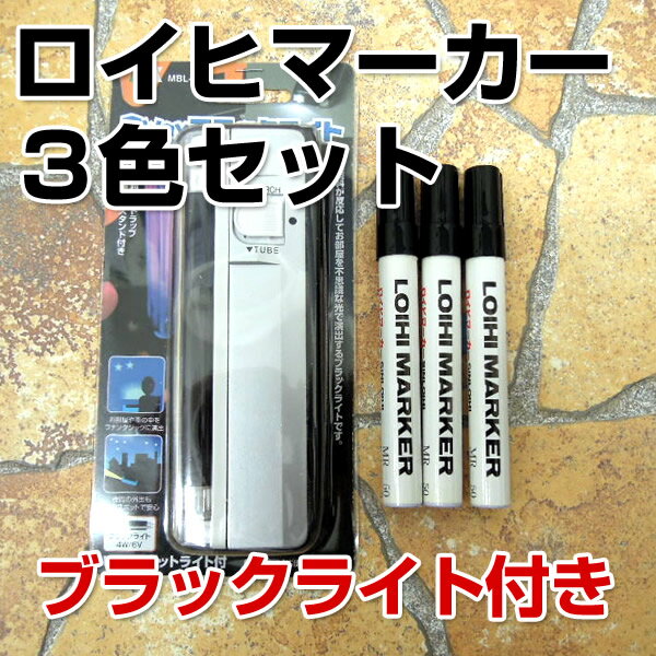 ロイヒマーカーペン(7g)3色セット(ブラックライト付き) 価格: 5,355円 レビュー評価:0.0 レビュー数:0 油性インキペン「ロイヒマーカーペン(7g)3色セット」にハンディタイプの「ブラックライト」をセットにしたお得なセット商品です。「ロイヒマーカーペン」は、通常可視光線下では見えず、紫外線ランプ(主波長265nm)によって反応し、鮮やかに光る文字や絵を書くことが出来る油性インキを使用したマーカーペンタイプの透明発光ペンです。油性インキを使用していますので、いろいろなところに使用が可能で、耐水性にもすぐれています。「2WAYブラックライト」は、蛍光塗料や発光塗料でお部屋や車の中に作画した絵や文字をファンタジックに演出するのに最適です。 ■2WAYブラックライト4W(MBL-LB)〔仕様〕●使用電池: Supported by 楽天ウェブサービス |
